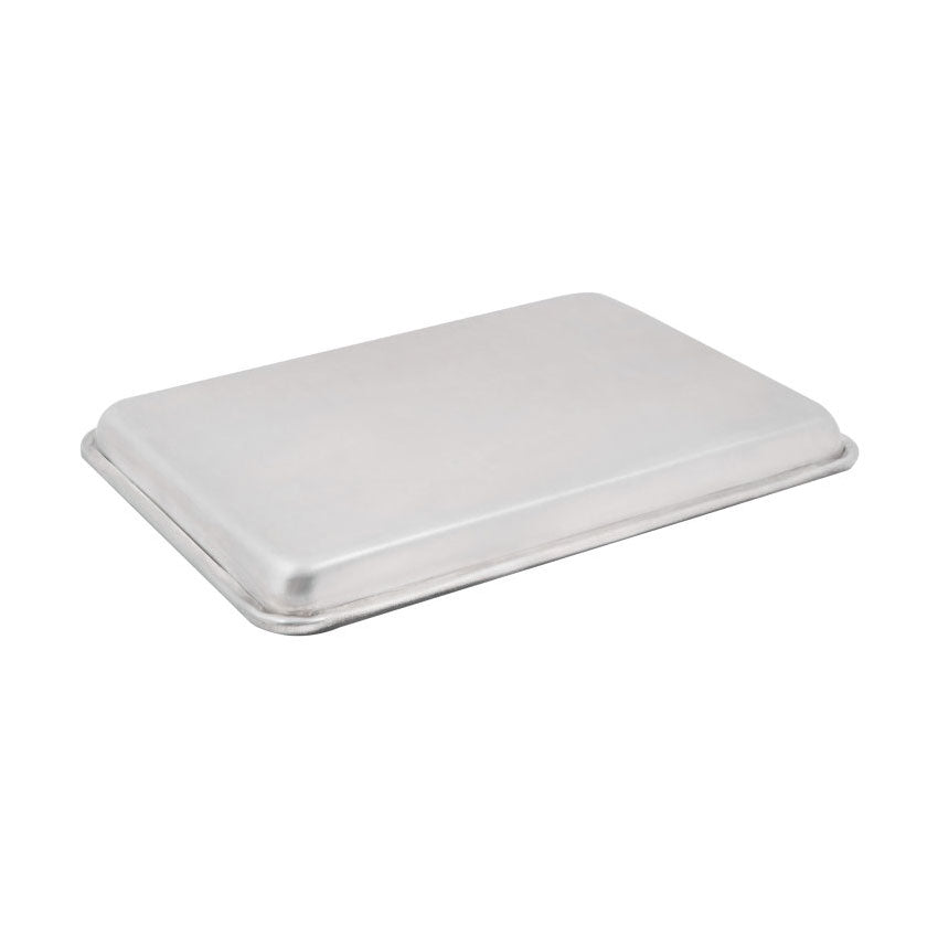 Made of sturdy aluminum, the Vollrath 5220NS Wear-Ever is proven to be 20 percent stronger than the competition. The nonstick coating provides excellent wear and durability and allows food to be removed easily, reducing cleaning time. The beaded rim helps retain the shape and keeps products in place, while reinforced corners add strength and durability. The pans concave bottom flattens during heating for even heating and consistent baking up to 450F. This product measures at 0.3 inches high by 13 inches wide by 9.56 inches long. Made in USA